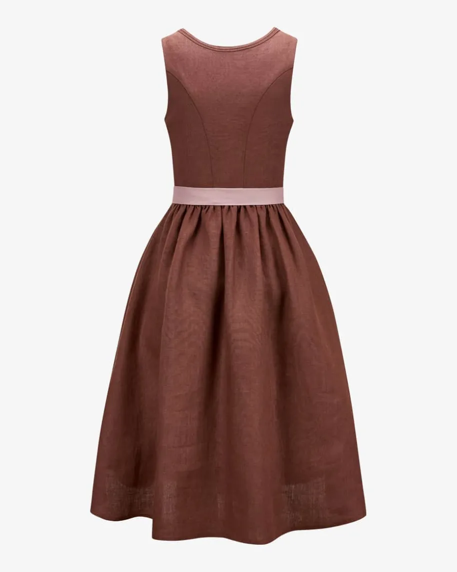 Bodensee Viky Leinendirndl lang mit Schürze für Damen von Viky x LODENFREY inKastanie und Rosa. Die Influencerin Viky Rader kreiert moderne Essentials mitminimalistischer Ästhetik – designed in Germany. Auch dieses Modell punktet dankder hochwertigen Leinen-Qualität, während die schlichte Baumwoll-Schürze denTrachten-Look gekonnt ergänzt.