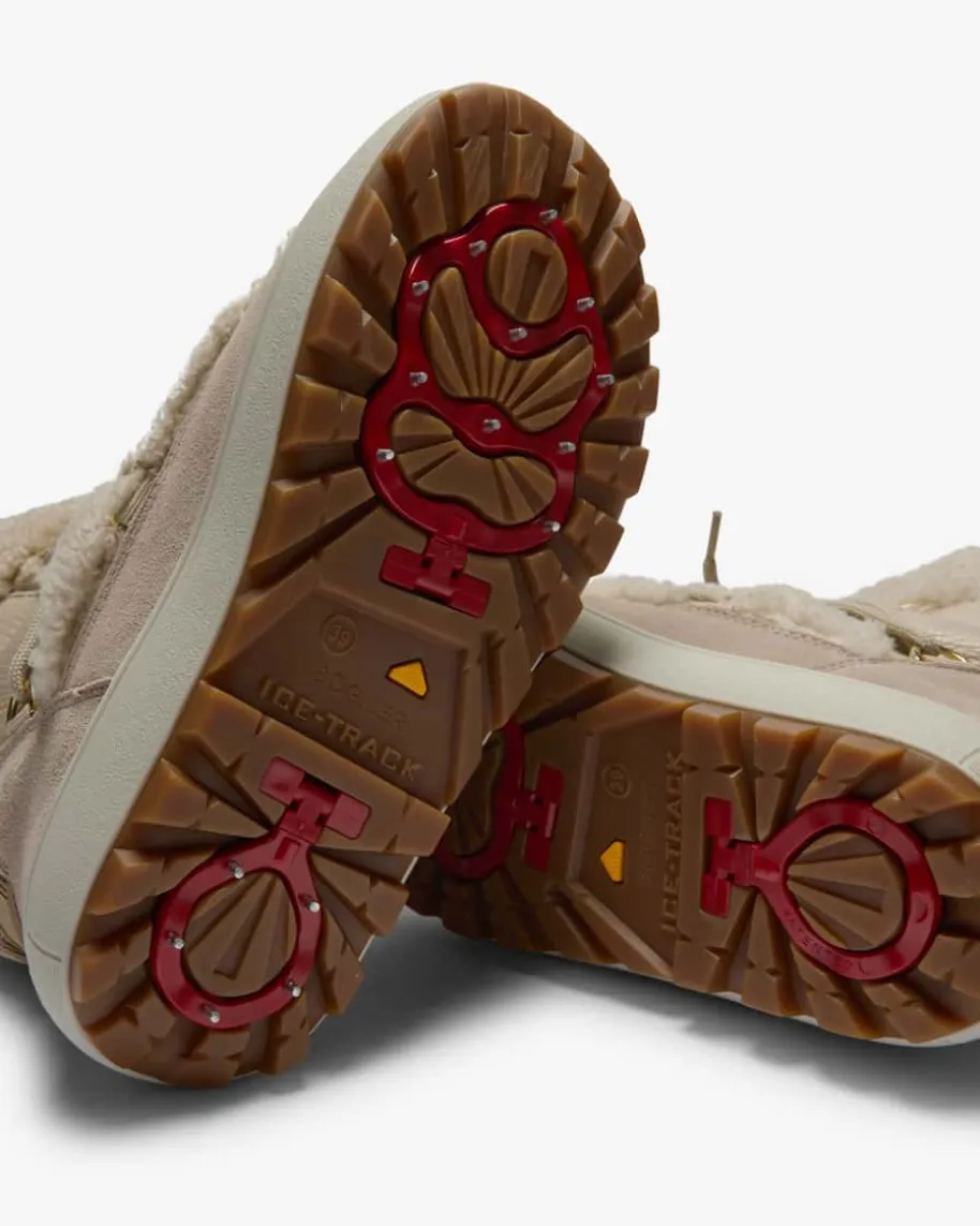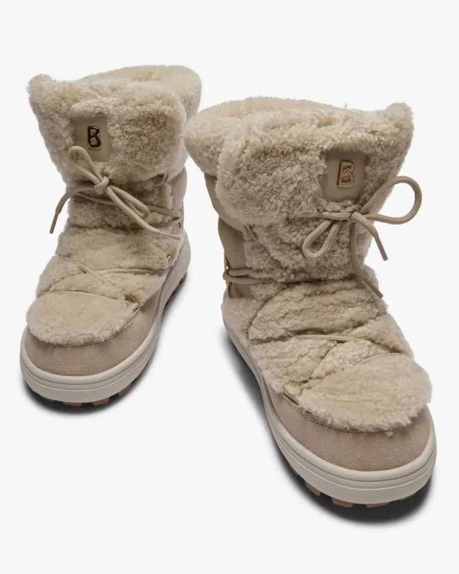 Boots für Damen von Bogner in Sand. Das alpine Modell avanciert zum beliebtenBegleiter dank der integrierten Spikes in der Gummisohle und komfortablemPlateau. Für das luxuriöse Upgrade sorgen aufgerautes Veloursleder inKombination mit genarbtem Glattleder, veredelt mit Ziernähten. Eine Ösen-Schnürung rundet das Design funktional ab.