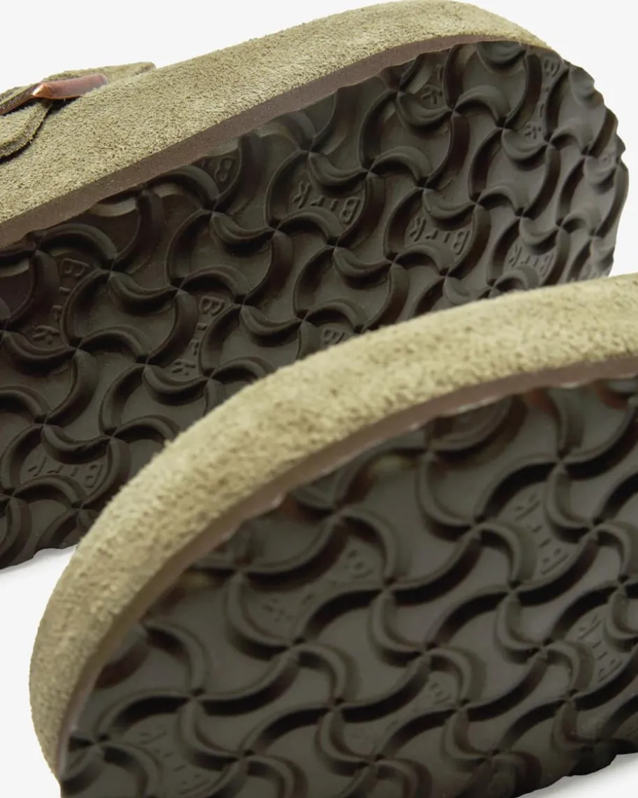Boston Pantoletten für Damen von Birkenstock in Taupe. Seit über 200 Jahrenrevolutioniert Birkenstock die Schuhindustrie immer neu. Mit seinemeinzigartigen, anatomischen Fußbett hat Birkenstock ein innovativesProduktkonzept auf den Markt gebracht, das bis heute Bestand hat. Diehochwertige Veloursleder-Qualität sorgt zugleich für ein edles Finish.