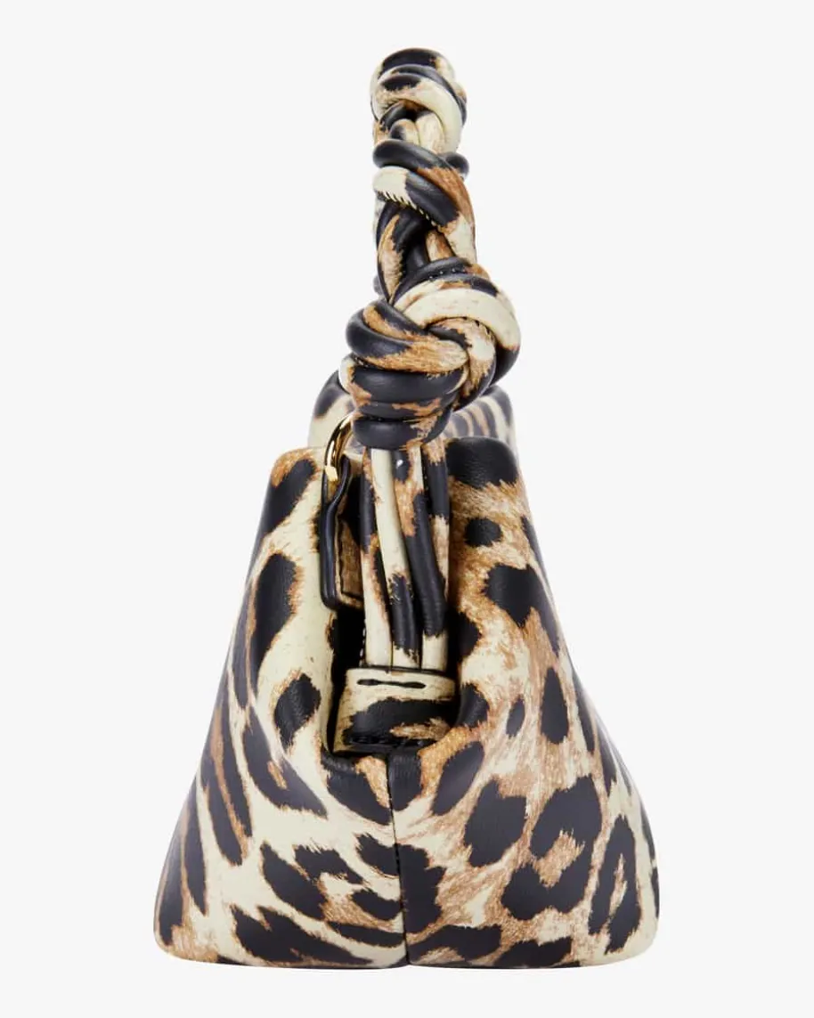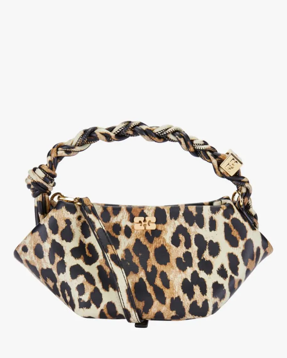 Bou Bag Mini Henkeltasche für Damen von Ganni in Braun, Dunkelbraun und Beige.Während das markante Leo-Design für einen stilvollen Look sorgt, setzen diegoldfarbenen Hardware-Elemente modische Akzente. Logo-Details und derraffinierte geflochtene Henkel runden das Gesamtbild harmonisch ab.