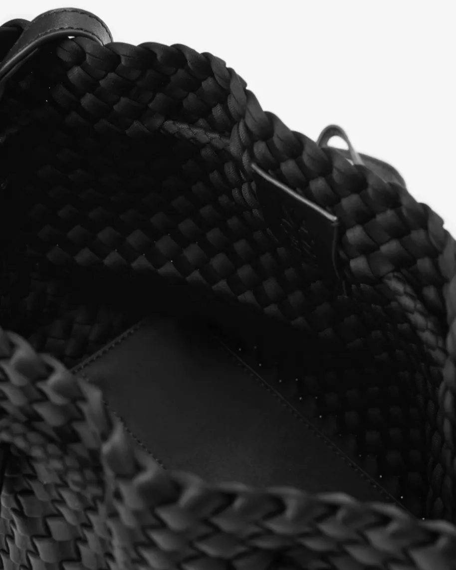 Gramercy Medium Bucket Umhängetasche für Damen von Naghedi in Schwarz. Diesestextile Modell präsentiert sich in dezent changierender Optik und edler Flecht-Aufmachung, während das Bucket-Design mit Kordelzug-Verschluss einen modischenBegleiter kreiert.