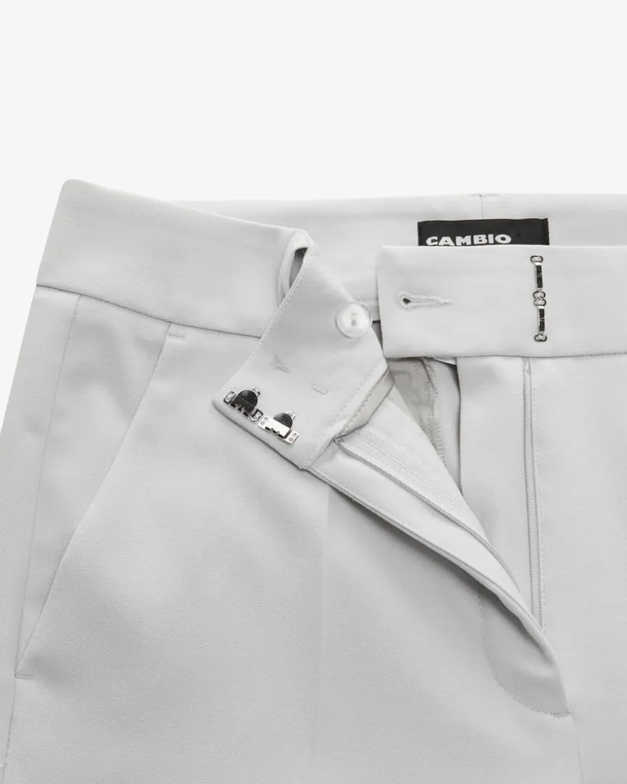 California Hose für Damen von Cambio in Hellgrau. Das Modell überzeugt dankfließender Material-Qualität und weitem Schnitt mit angenehmem Tragegefühl,während die Bügelfalten ein elegantes Gesamtbild mit besonderem Touchkreieren.