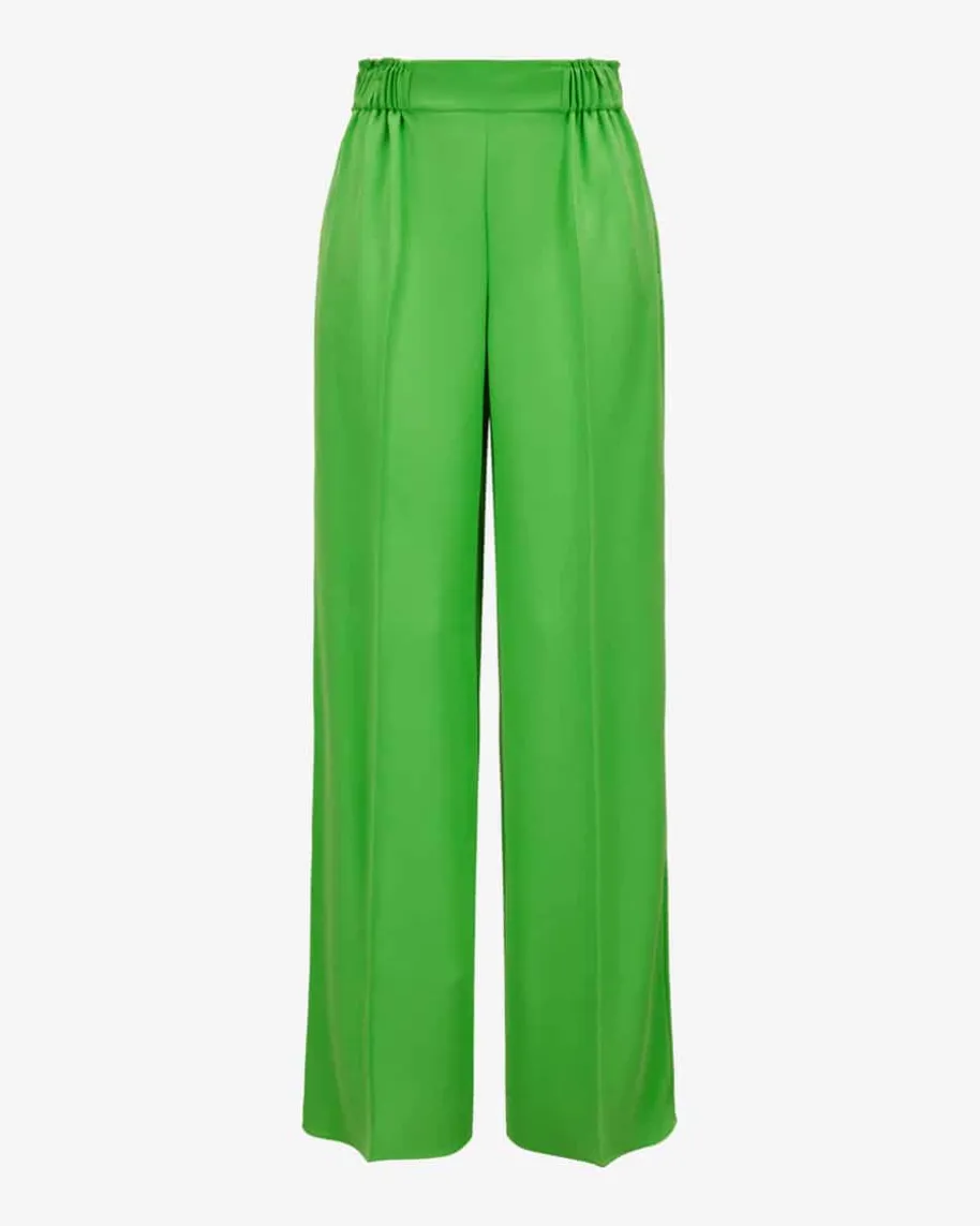 Carla Hose für Damen von Natan in Grün. Dieses elegante Modell präsentiert sichmit fließender Material-Qualität, die für einen femininen Look sorgt, währenddie Bügelfalten zusammen mit den elastischen Einsätzen am Bund das Gesamtbildharmonisch vollenden.