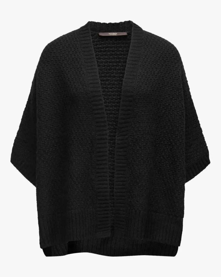 Cashmere-Cape für Damen von Windsor in Schwarz. Während die reine Cashmere-Qualität in Waffelstrick-Aufmachung eine weiche Haptik schafft, kreiert dieweite Cape-Silhouette mit kurzen Ärmeln einen legeren Layering-Favoriten.