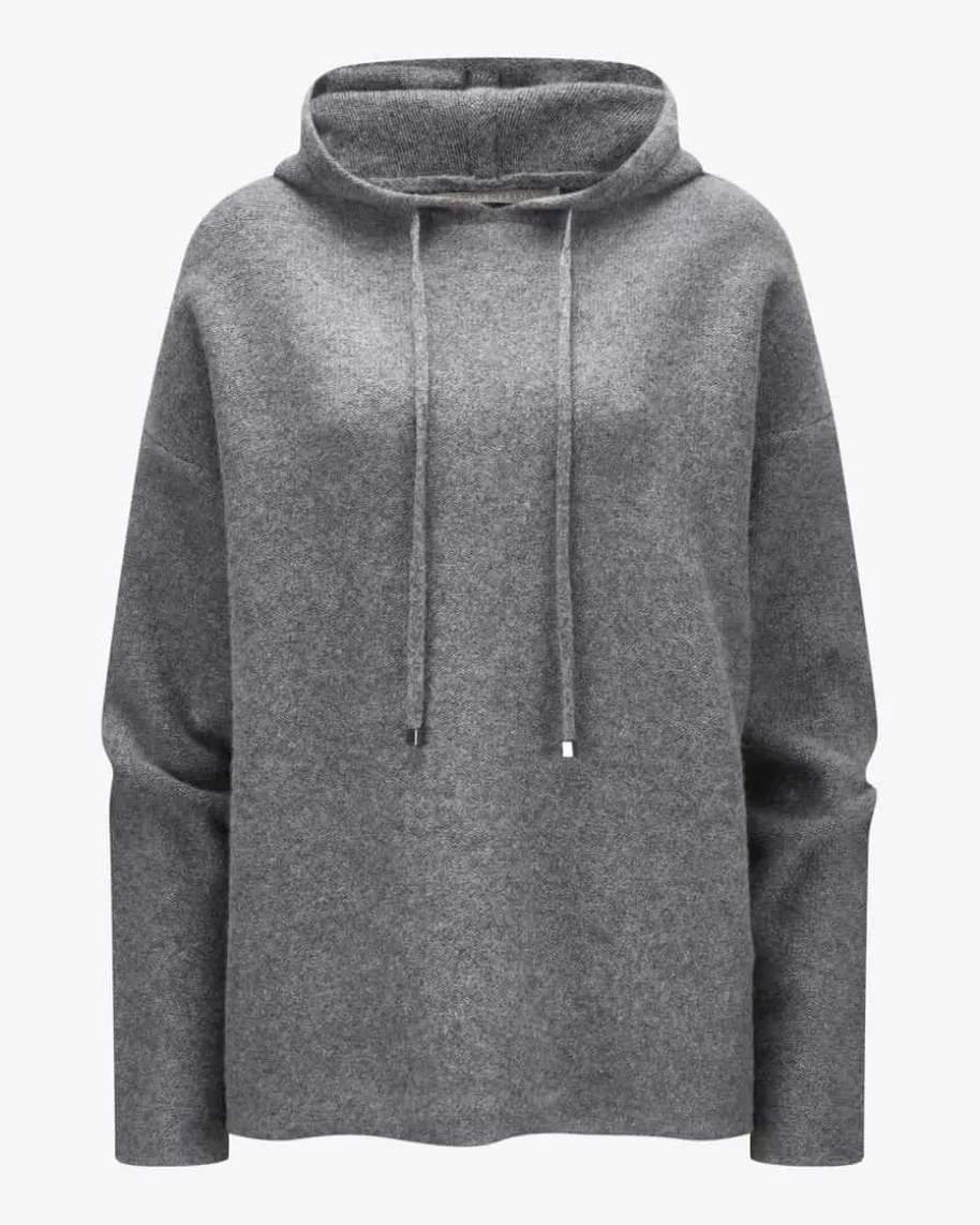 Cashmere-Hoodie für Damen von (The Mercer) N.Y. in Grau. Das Label vereinteinzigartige Eleganz und kosmopolitische Coolness in Kollektionen, die durchpräzise Handwerkskunst, klare Schnitte und höchste Qualität überzeugen. Auchdieses Modell punktet mit hochwertigem Boiled Cashmere-Material, das fürangenehm kuscheligen Tragekomfort sorgt – Ein legeres Basic für ihre Garderobe.