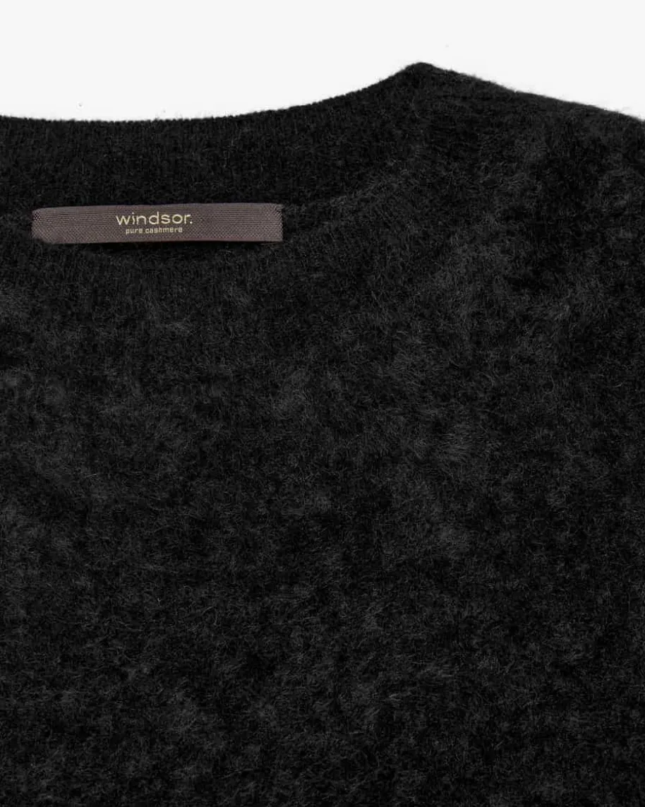 Cashmere-Pullover für Damen von Windsor in Schwarz. Das leger geschnitteneModell punktet mit optischen sowie haptischen Highlights dank der besondersweichen Brushed-Cashmere-Qualität – ein modischer Hingucker für vielseitigeCasual-Looks.