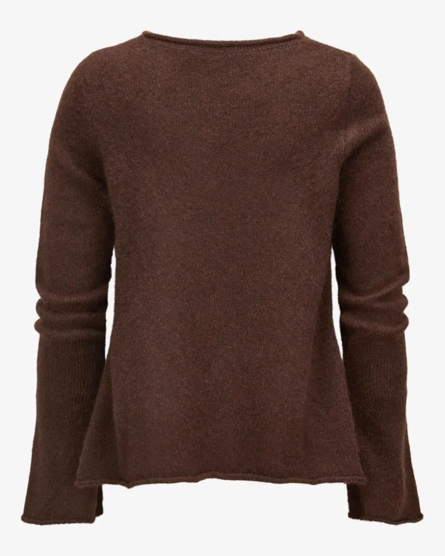 Cashmere-Pullover für Damen von LODENFREY in Schoko. Das ausgestellte Modellpräsentiert sich als femininer Begleiter mit zarten Details, während diehochwertige Cashmere-Seiden-Qualität mit dezentem Schimmer einen beliebtenCasual Favoriten kreiert.