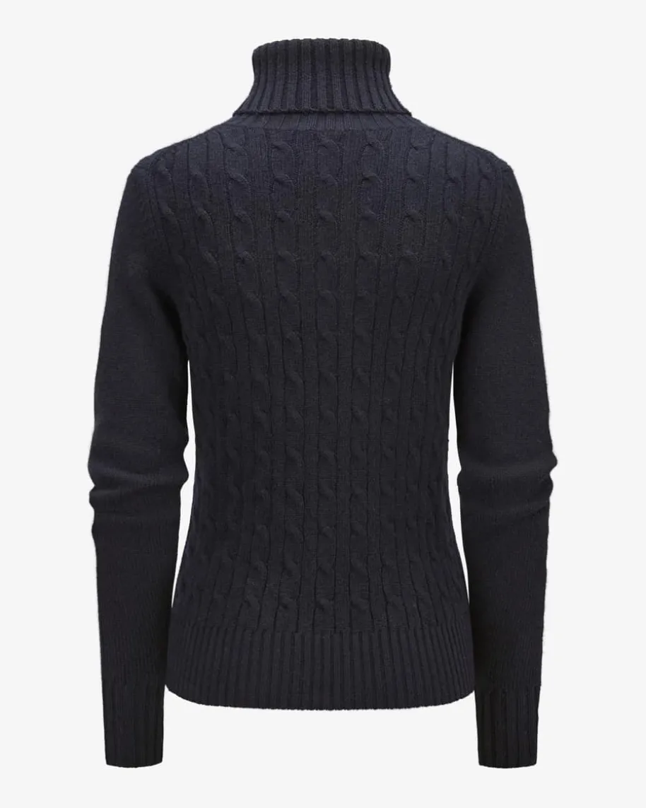 Cashmere-Pullover für Damen von Allude in Navy. Das Münchner Label wurde 1993von Andrea Karg gegründet und ist bekannt für luxuriöse Strickmode aus edlemCashmere. Auch dieses Modell überzeugt mit hochwertiger Cashmere-Qualität, diefür angenehmen Tragekomfort sorgt. Der Rollkragen und das feine Zopfstrickmusterrunden den femininen Style harmonisch ab.