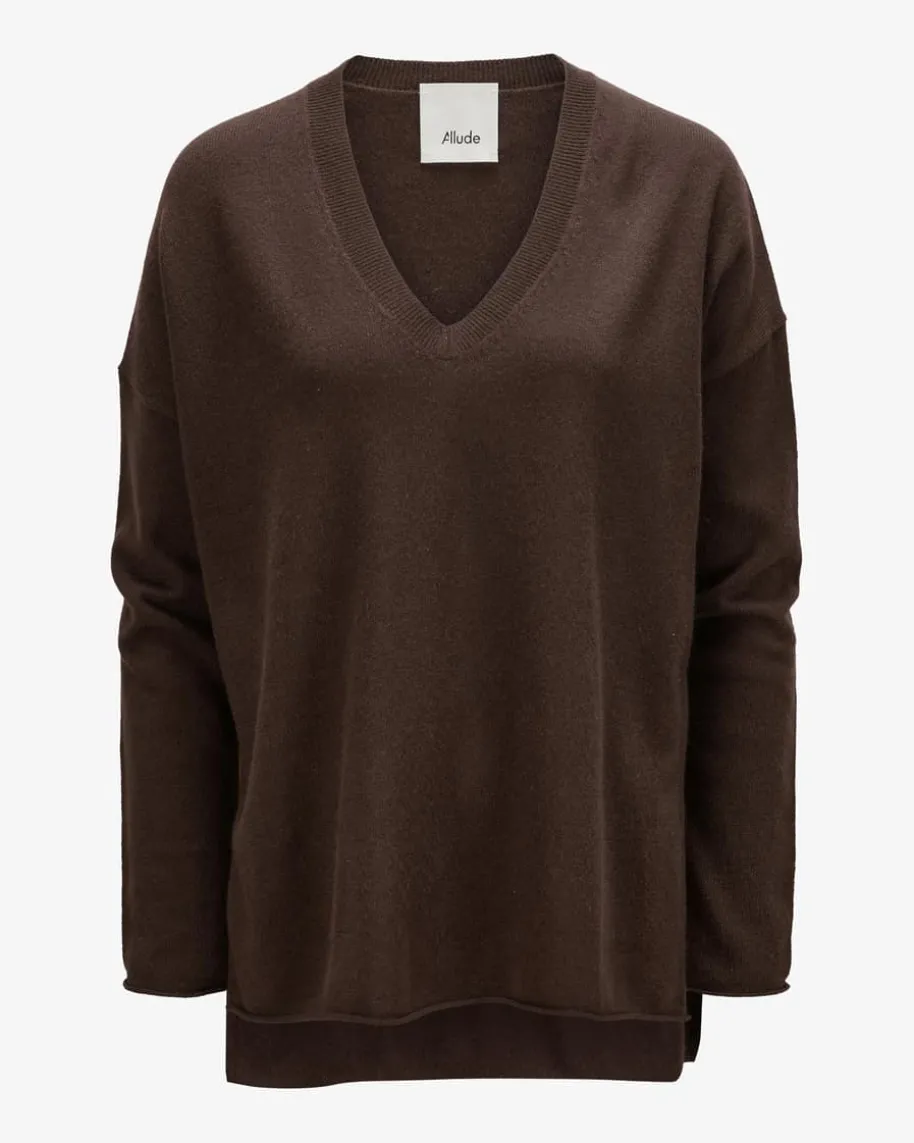Cashmere-Pullover für Damen von Allude in Choclate. Das Münchner UnternehmenAlludesteht für Mode, die Selbstbewusstsein und zeitlose Individualität ausstrahlt.Gefertigt aus luxuriöser Cashmere-Wolle, besticht das melierte Modell mitbesonders weichem Griff und leichter Strick-Haptik. Die weite Silhouette und dieüberschnittenen Schultern kreieren einen modischen und legeren Favoriten.