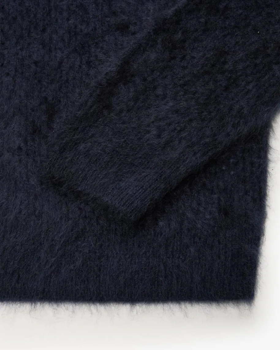 Cashmere-Pullover für Damen von Windsor in Navy. Das Modell punktet mitoptischen sowie haptischen Highlights dank der flauschigen Brushed-Cashmere-Qualität sowie dem modischen Lochstrickmuster – Ein hochwertiger Casual-Begleiter mit Stil.