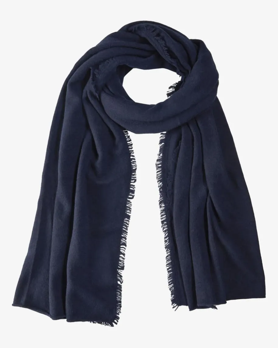 Cashmere-Schal für Damen von OFF & CO in Navy. Das Modell begeistert dank derhochwertigen Cashmere-Qualität mit angenehm-weichem Tragegefühl, während dasminimalistische Design mit Fransen-Details einen zeitlosen Begleiter für kalteTage kreiert.
