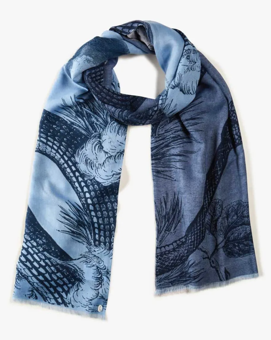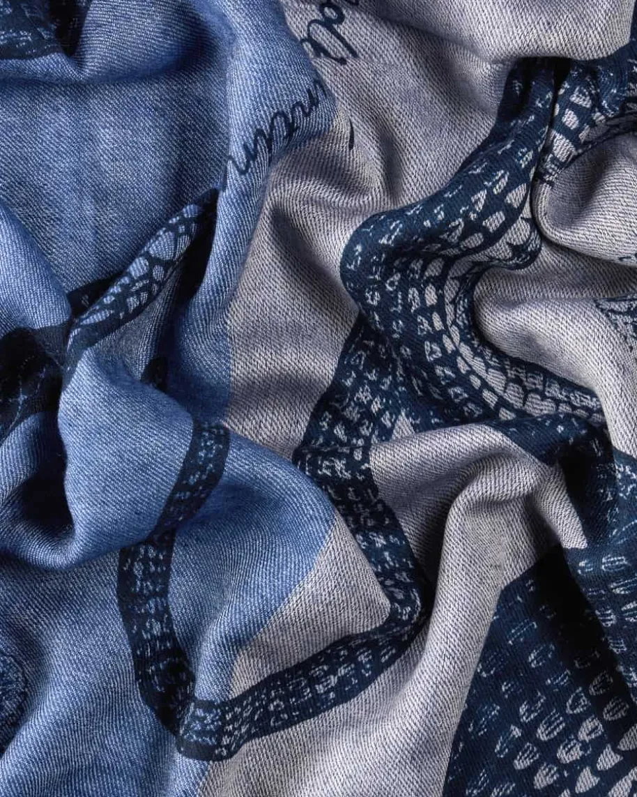 Cashmere-Schal für Damen von Friendly Hunting in Navy und Taubenblau. Diehochwertige, weiche Cashmere-Verarbeitung sorgt für angenehme Tragemomente,während das modische Allover-Dessin sowie dezente Fransen-Details ein stilvollesAccessoire kreieren.