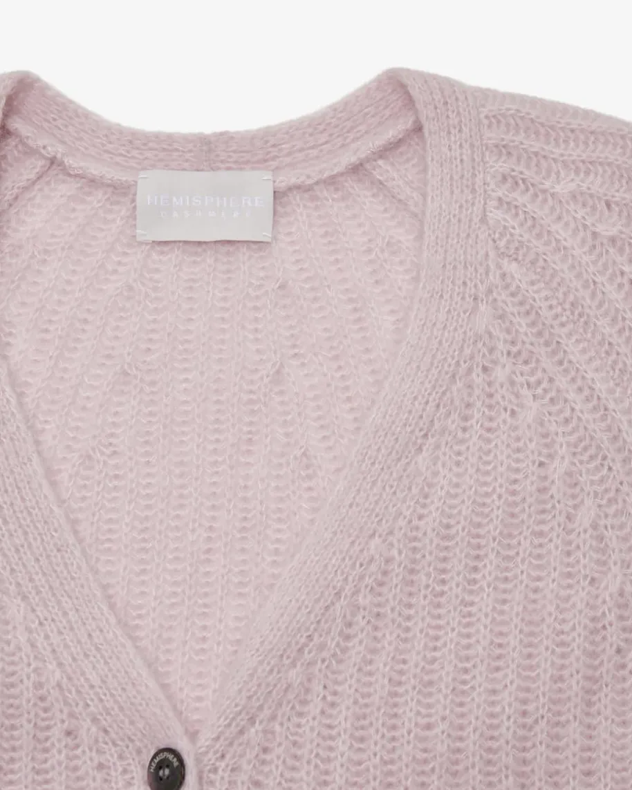 Cashmere-Seiden-Strickjacke für Damen von Hemisphere in Rosé. Die deutsche Markesteht für luxuriöse Strick- und Kaschmirteile mit Fokus auf Qualität, Weichheitund zeitlose Farben. Das Modell präsentiert sich dank der Oversize-Schnittführung sowie dem hochwertigen Cashmere-Seiden-Mix als legerer Strick-Liebling mit weicher Haptik.