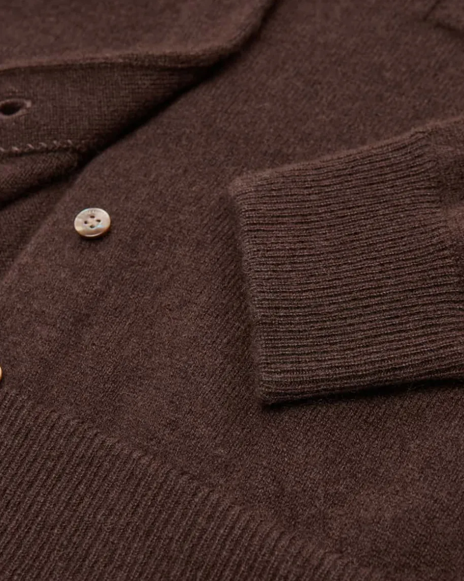 Cashmere-Strickjacke für Damen von Hemisphere in Espresso. Die deutsche Markesteht für luxuriöse Strick- und Kaschmirteile mit Fokus auf Qualität, Weichheitund zeitlose Farben. Das melierte Modell präsentiert sich dank hochwertigerCashmerewolle und legerer Silhouette als femininer Strick-Liebling mit weicherHaptik. Die eingestrickte dekorative Brusttasche mit Glitzerstreifen rundet denLook harmonisch ab.