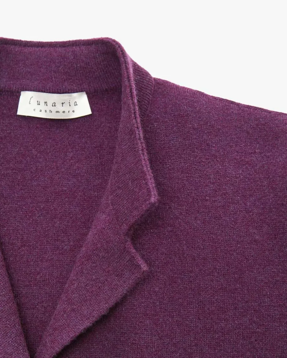 Cashmere-Strickjacke für Damen von Lunaria in Aubergine. Dank der Verwendung vonhochwertiger Cashmere-Wolle besticht das Modell mit besonders weicher Strick-Qualität, während das klassische Design einen zeitlos-modernen Favoriten fürIhre Casual-Garderobe schafft.
