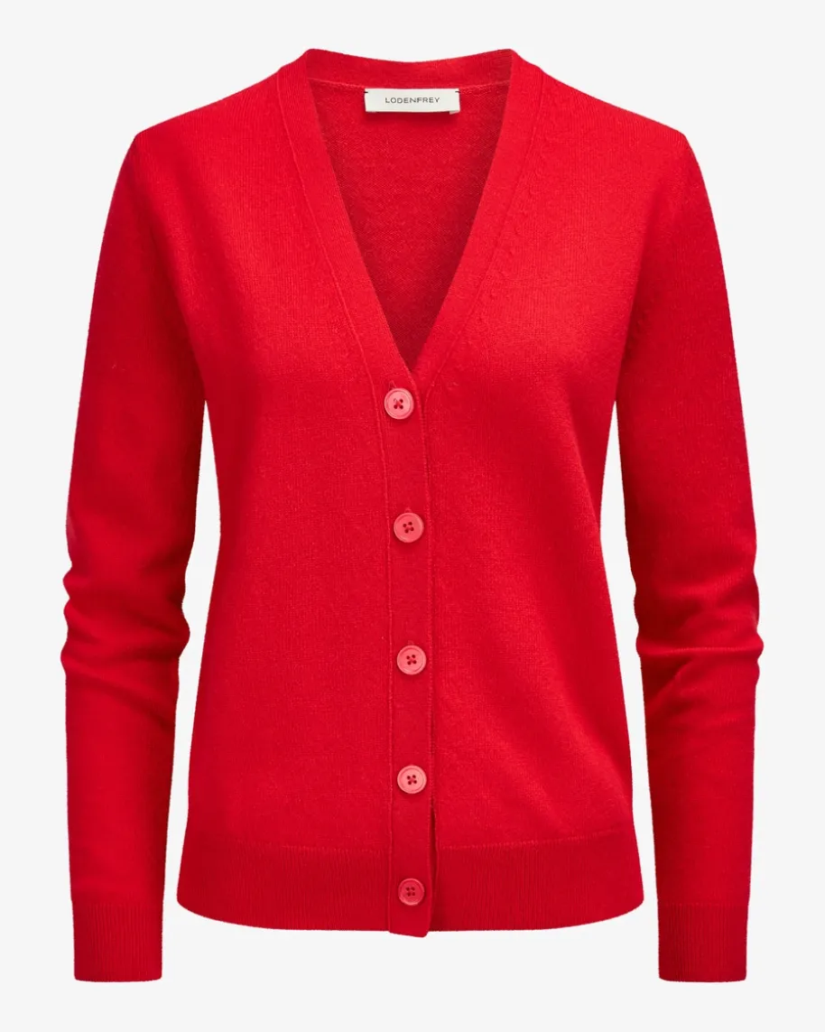 Cashmere-Strickjacke für Damen von LODENFREY in Rot. Dank hochwertiger Cashmere-Qualität überzeugt das Modell mit leichten Tragemomenten und einer weichenHaptik, während das minimalistische Design mit tonalen Knöpfen ein zeitlosesStrick-Essential schafft.