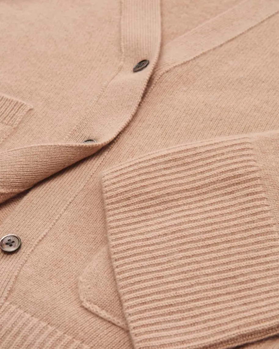 Cashmere-Strickjacke für Damen von (The Mercer) N.Y. in Beige. Das Label vereinteinzigartige Eleganz und kosmopolitische Coolness in Kollektionen, die durchpräzise Handwerkskunst, klare Schnitte und höchste Qualität überzeugen. Auchdieses Modell punktet mit hochwertigem Boiled Cashmere-Material, das fürangenehm kuscheligen Tragekomfort sorgt – Ein zeitloses Basic für ihreGarderobe.