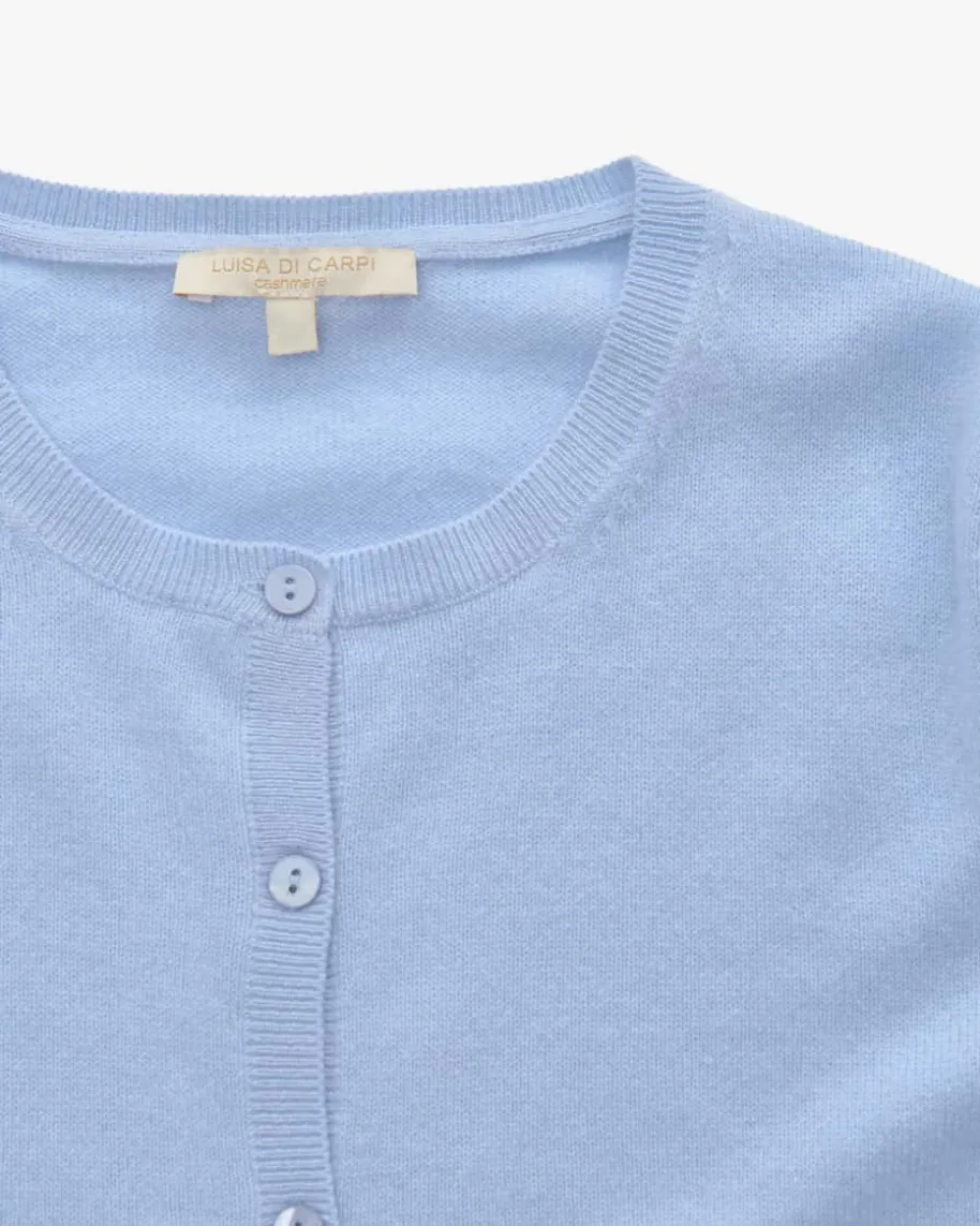 Cashmere-Strickjacke für Damen von Luisa Di Carpi in Hellblau. Dank der feinenStrick-Qualität und der Verwendung von hochwertiger Cashmere-Wolle überzeugt dasModell mit weicher Haptik, die für besonders angenehme Tragemomente sorgt.Zugleich runden klassische Details das Gesamtbild harmonisch ab.