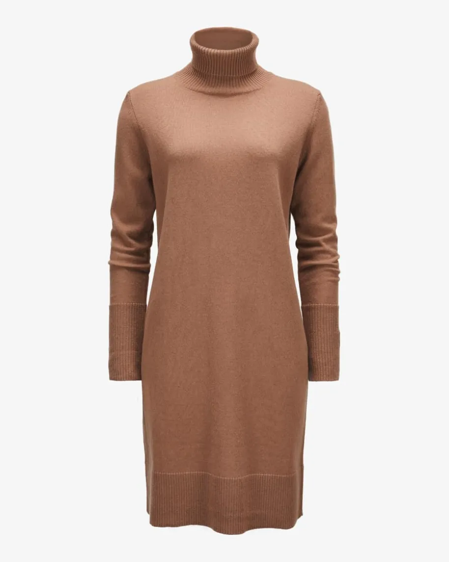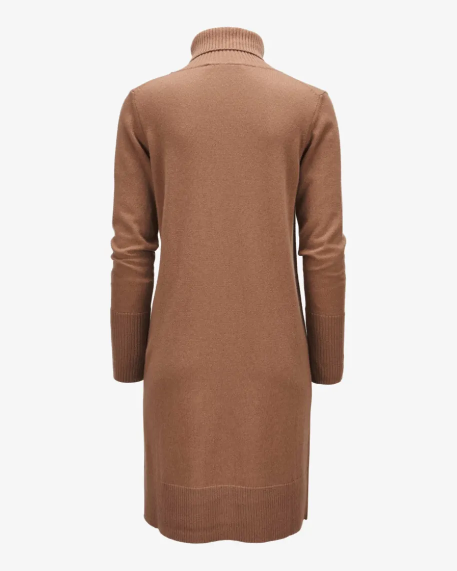 Cashmere-Strickkleid für Damen von LODENFREY in Haselnuss. Das geradegeschnittene Modell avanciert dank der hochwertigen Cashmere-Qualität inklassischem Strick-Design zu einem weichen Herbst-Favoriten mit femininemCountry-Touch.