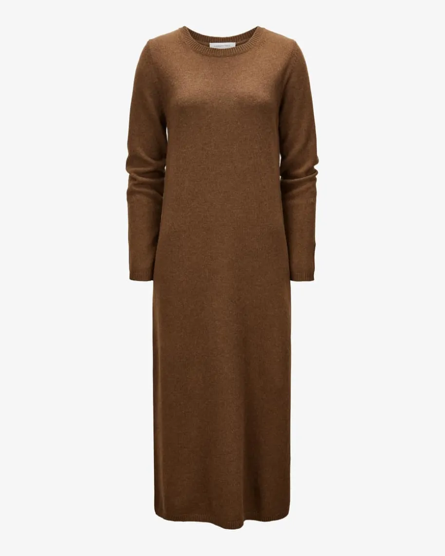 Cashmere-Strickkleid für Damen von LODENFREY in Braun. Dank der hochwertigenCashmere-Verarbeitung begeistert das lang geschnittene Modell mit einem weichenGriff, während die Seitenschlitze das Kleid zu einem stilvollen sowie zeitlosenKlassiker in Ihrer Casual-Garderobe werden lassen.