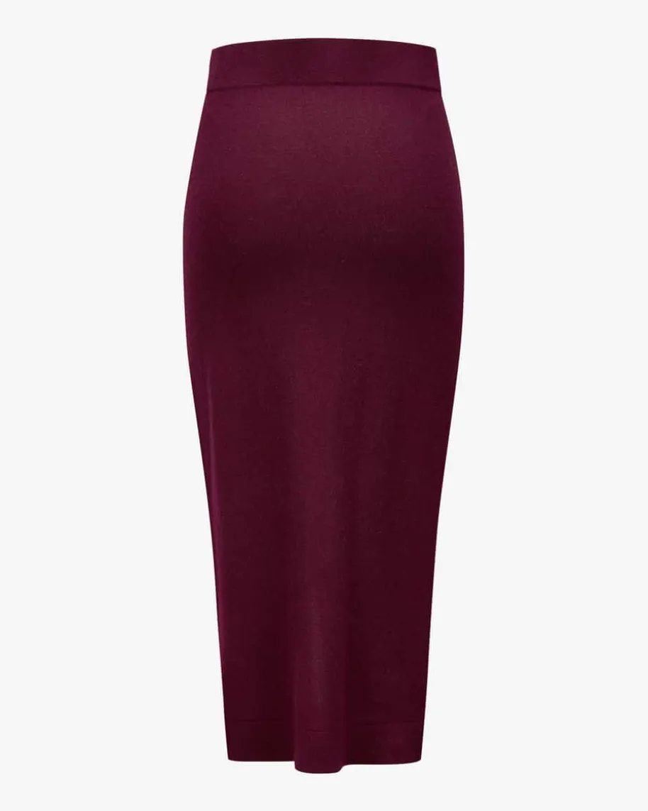 Cashmere-Strickrock von LODENFREY in Bordeaux. Cashmere-Strickrock von LODENFREYin Bordeaux. Das schmal geschnittene Modell mit Knopfleiste und dezentem Schlitzüberzeugt mit seiner eleganten Aufmachung, während die hochwertige Cashmere-Qualität angenehme Tragemomente beschert. Für einen cosy Allover-Lookkombinieren Sie den passenden Strickpullover oder Strickjacke.