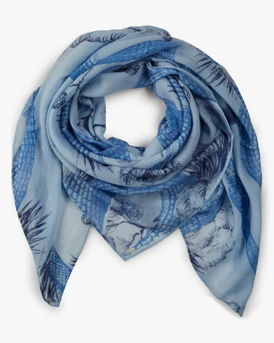 Cashmere-Tuch für Damen von Friendly Hunting in Hellblau, Navy und Blau. LassenSie sich durch die hochwertige und besonders leichte Cashmere-Qualität haptischverwöhnen, während das modische Allover-Dessin ein stilvolles Accessoirekreiert.