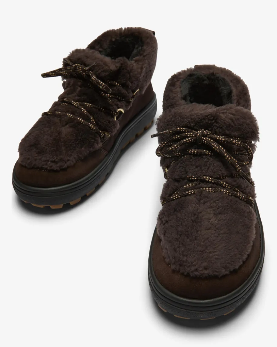 Chamonix Boots für Damen von Bogner in Dunkelbraun. Zeitloses Design inVerbindung mit funktionalem Komfort zeichnen dieses Modell aus. Während dieLammfell-Innenseite und ausklappbaren Spikes in der Gummisohle einen praktischenBegleiter für kalte Tage kreieren, betonen die edle Veloursleder-Verarbeitungsowie die raffinierte Schnürung die modische Aufmachung.