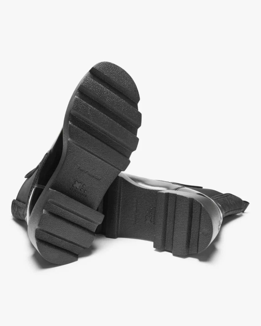 Chelsea Boots für Damen von Tory Burch in Schwarz. Für angesagte Herbst-Looks -Das Modell zeichnet sich durch die hochwertige Lackleder-Qualität aus, währenddie markante Plateausohle für einen modischen Biker-Twist sorgt.