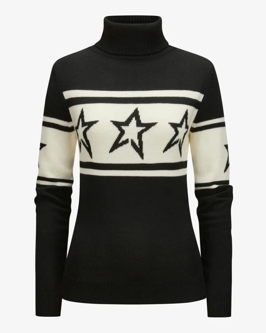 Chopper Rollkragenpullover für Damen von Perfect Moment in Schwarz und Weiß.Während die hochwertige Merinowolle für einen besonders weichen Griff sorgt,kreiert das zeitlose Design mit labeltypischen Stern-Intarsien einen vielseitigkombinierbaren Strick-Liebling für stilvolle Winter- oder Ski-Looks.