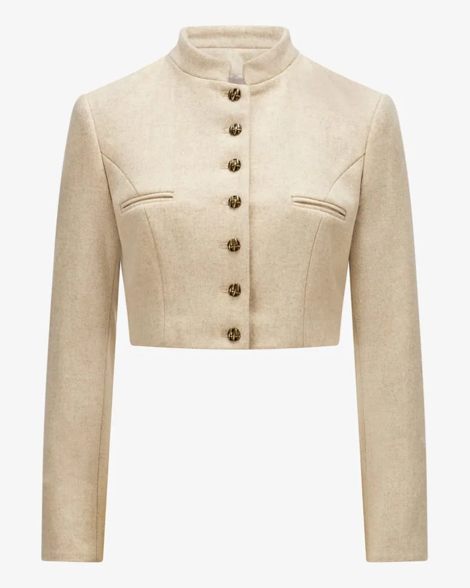 Christa Trachtenjacke für Damen von Kinga Mathe in Gold. Das Modell überzeugtdank hochwertigem Wollmix in traditioneller Aufmachung, welche durch klassischeDetails sowie die taillierte Silhouette eine feminine Passform erhält. Diechangierenden Glitzerfasern und raffinierten Knöpfe runden den Trachten-Lookgekonnt ab.