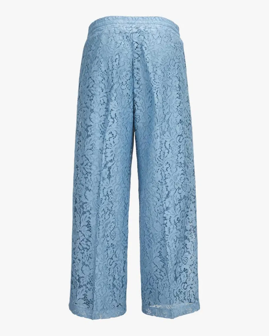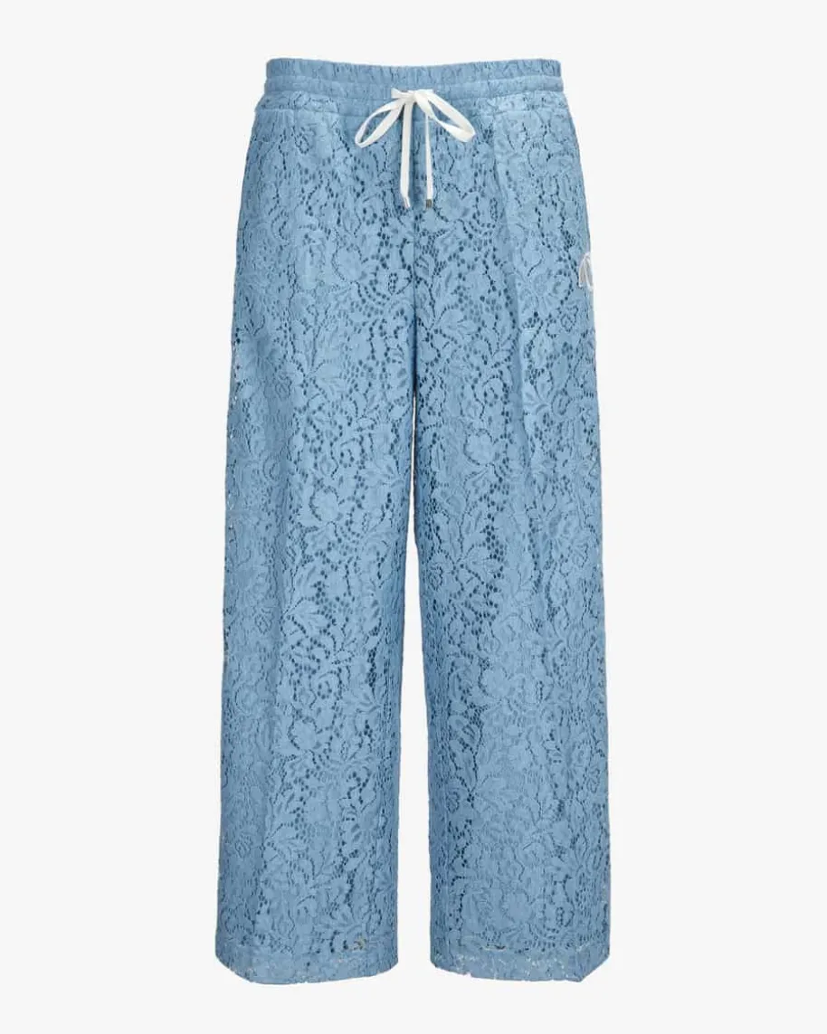 Clara Hose für Damen von Cambio in Hellblau und Weiß. Das Modell präsentiertsich mit weitem sowie verkürztem Bein modisch, während die zarte Spitzen-Aufmachung zusammen mit den sportiven Galonstreifen einen extravaganten Lookkreiert. Der elastische Bund mit kontrastierendem Tunnelzug rundet dasGesamtbild gekonnt ab.
