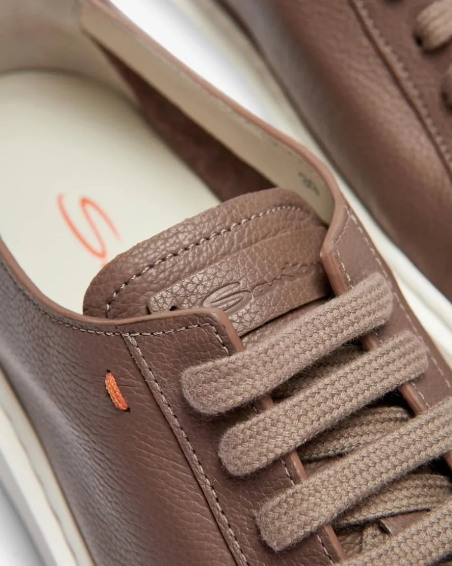 Clean Icon Sneaker für Damen von Santoni in Taupe. Das klassische Low Top-Modellpräsentiert sich dank genarbtem Leder in besonders softer Verarbeitung und demcleanen Design mit markanter Sohle als moderner Alltags-Begleiter.