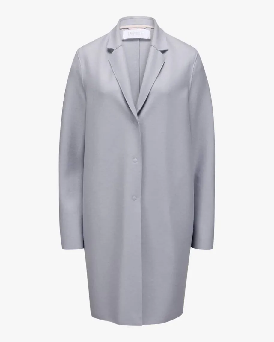 Cocoon Wollmantel für Damen von Harris Wharf London in Blaugrau. Das geradegeschnittene Modell aus angenehmer Schurwolle präsentiert sich edler Aufmachung.Die minimalistische Verarbeitung der Säume rundet das Design charakteristischab.