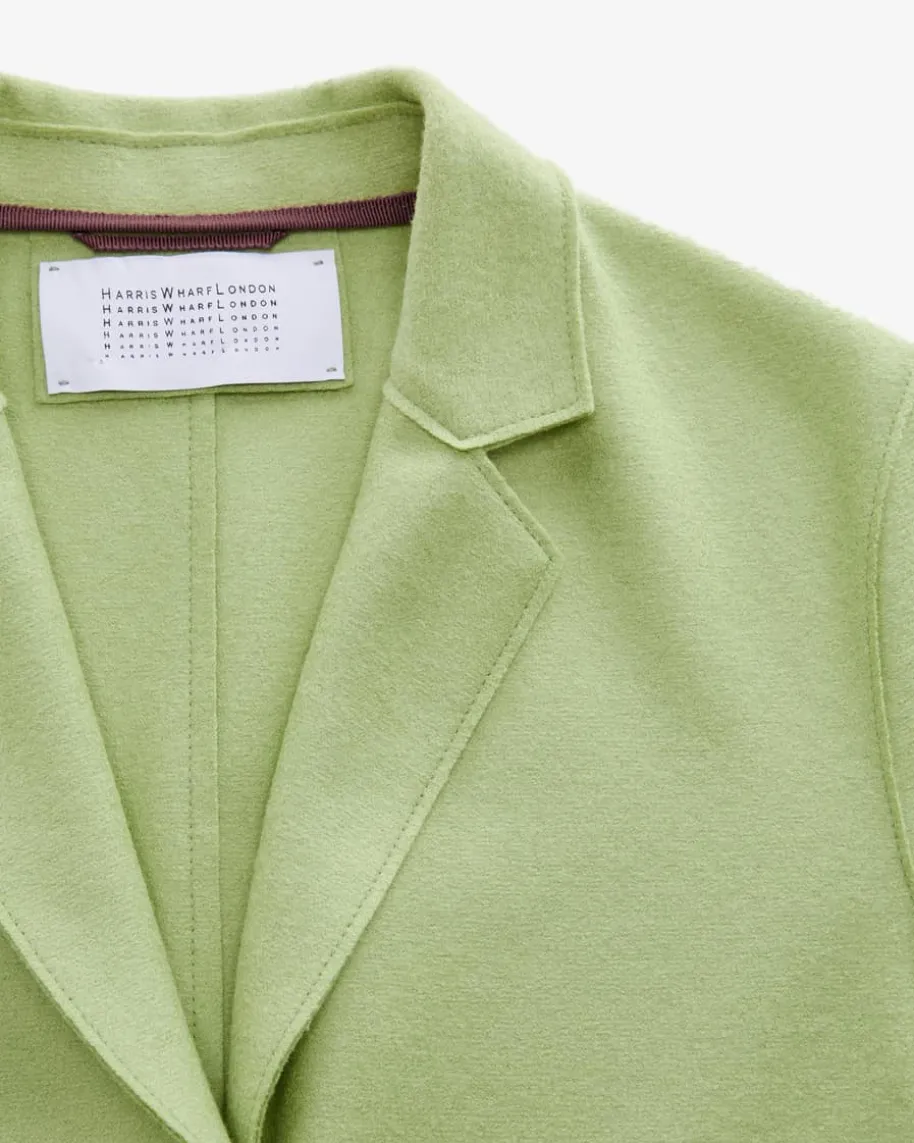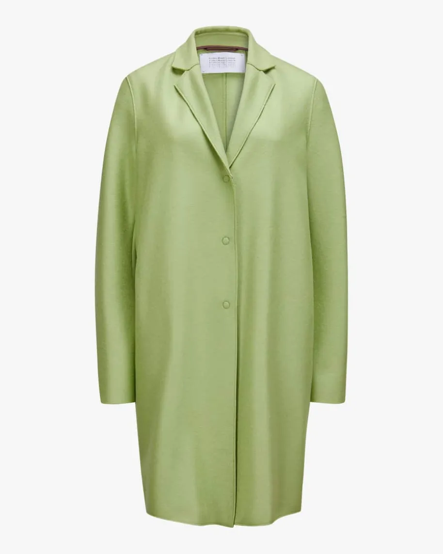 Cocoon Wollmantel für Damen von Harris Wharf London in Matcha. Das geradegeschnittene Modell aus angenehmer Schurwolle präsentiert sich edler Aufmachung.Die minimalistische Verarbeitung der Säume rundet das Design charakteristischab.