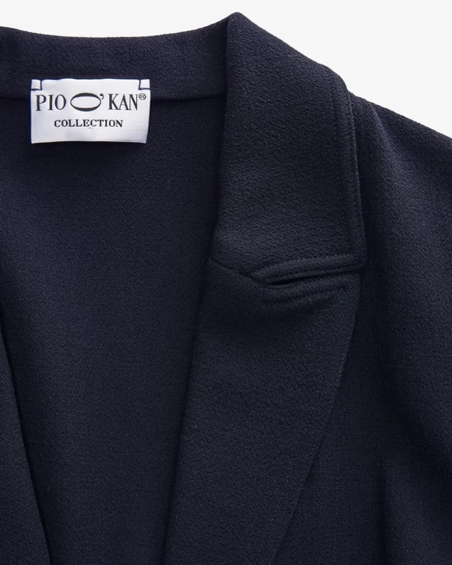 Crepe-Mantel für Damen von Pio O’Kan in Marine. Made in Germany – Das Modellbegeistert mit strukturierter Double-Crepe Ausführung aus leichter Schurwoll-Qualität, die für angenehmen Tragekomfort sorgt. Klassische Details und dasTaillenband zaubern einen feminin-elegante Silhouette.