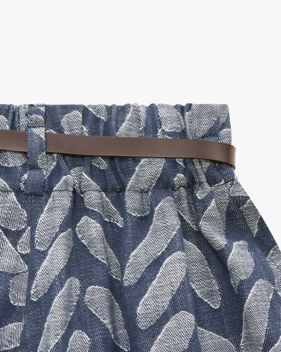 Culotte für Damen von Odeeh in Blau. Das Modell mit modernem Schnitt überzeugtmit hochwertiger Baumwoll-Qualität, während das Abstrakte-Dessin und die Denim-Aufmachung einen besonderen Begleiter für sommerliche Styles kreieren.