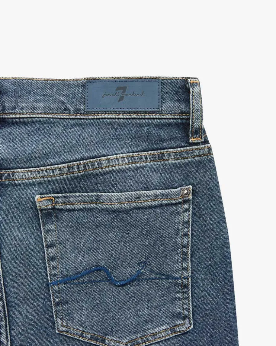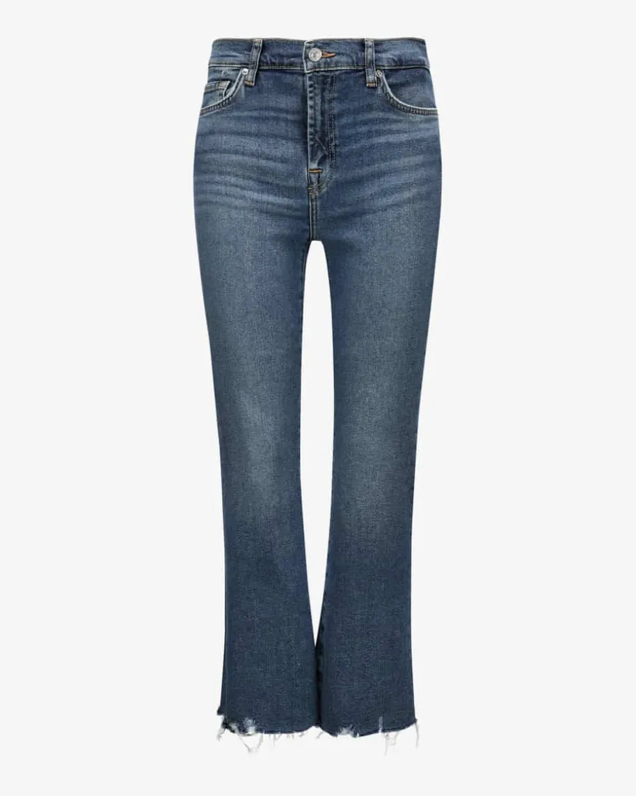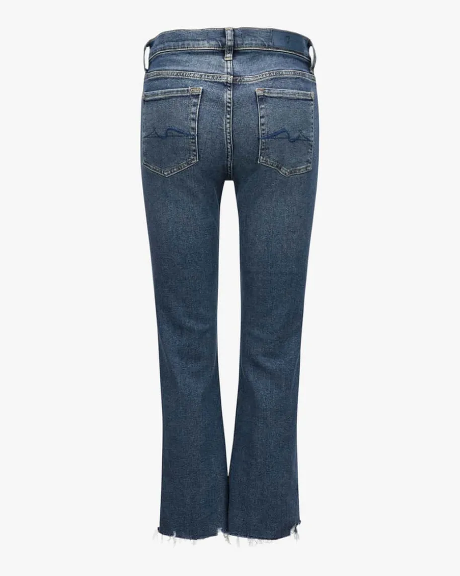 Daisy 7/8-Jeans Ankle Boot für Damen von 7 For All Mankind in Blau. Das Modellzeichnet sich durch das ausgestellte Bein aus und begeistert mit dem elastischenBaumwoll-Mix – Ein modischer Begleiter für vielfältige Outfits.