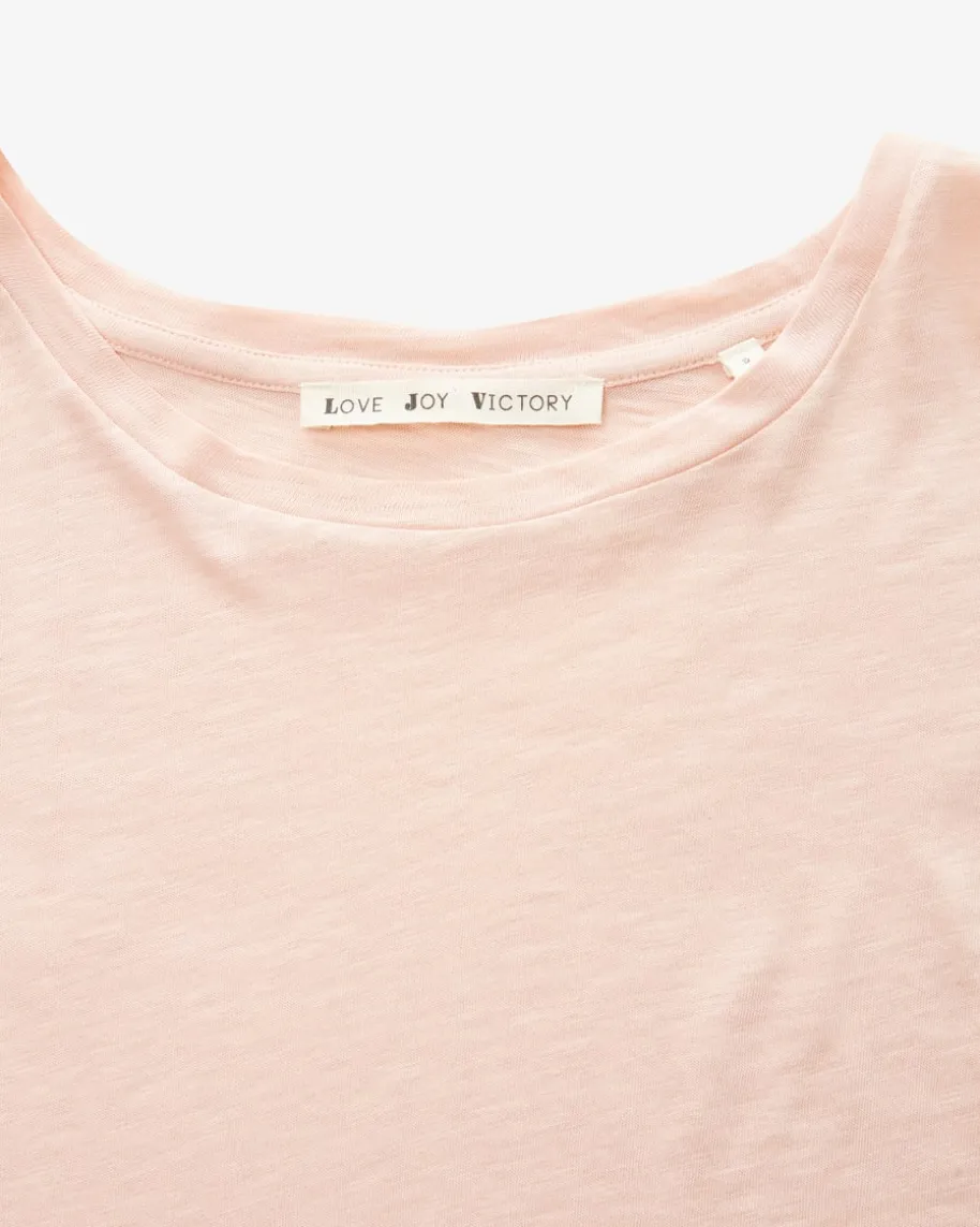 Daisy T-Shirt für Damen von Love Joy Victory in Rosa. Das Modell aushochwertiger Bio-Baumwolle besticht neben einer angenehmen Haptik mit modischenDetails sowie der Seitenschlitze. Zugleich schafft das sonst schlichte Designeinen vielseitigen Alltagsbegleiter.