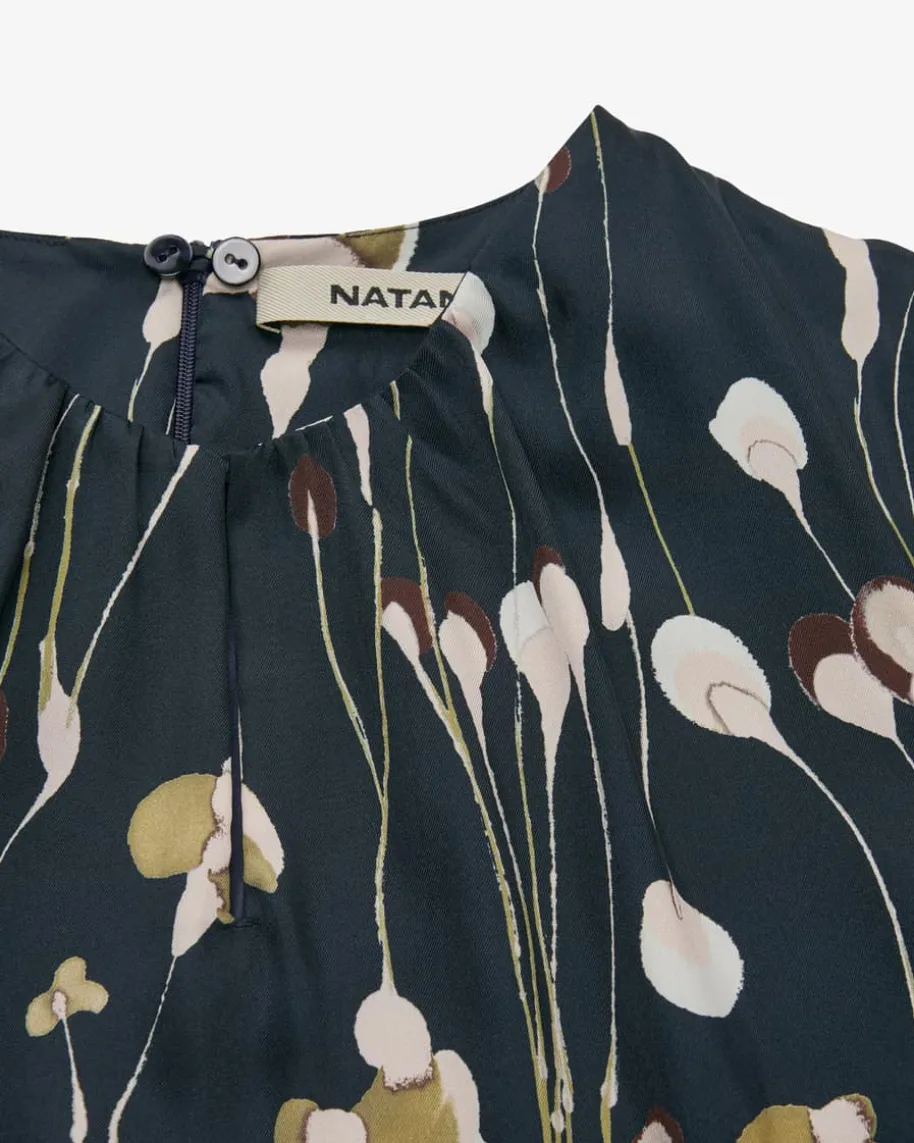 Darney Maxikleid für Damen von Natan in Marine, Khaki und Rosé. Das fließendeModell in femininer Silhouette avanciert zu einem vielseitigen Begleiter, derdank des Schluppen-Detail besondere Akzente setzt.