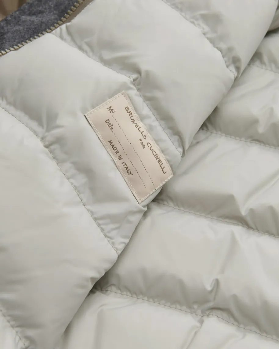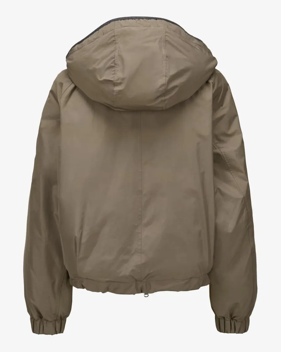 Daunen-Bomberjacke für Damen von Brunello Cucinelli in Taupe. Mit diesem Modellpräsentiert das italienische Label einen leichten und dank der Daunen-Feder-Füllung zugleich wärmenden Begleiter für angesagte Looks. Die weiteBomberjacken-Silhouette mit abnehmbarer Kapuze unterstreicht den legerenCharakter gekonnt.