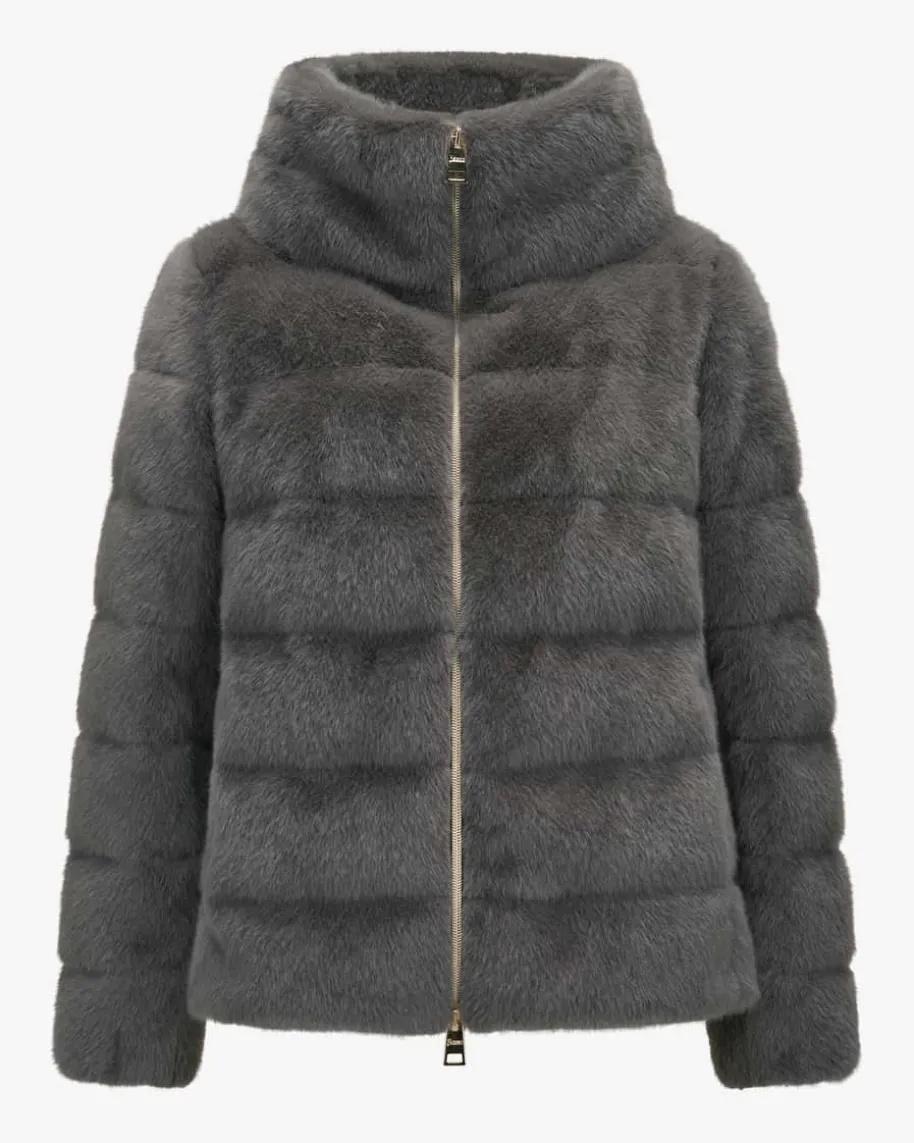 Daunen-Kunstfelljacke für Damen von Herno in Grau. Das italienische PremiumLabel ist seit Jahren bekannt für seine besonders leichten Daunenjacken, die mitzeitlos-sportiven Designs überzeugen. Mit diesem Modell hat Herno einenstilvollen und zugleich warmen Begleiter in weicher Fake-Fur-Aufmachunggeschaffen, der sowohl optisch als auch haptisch überzeugt.