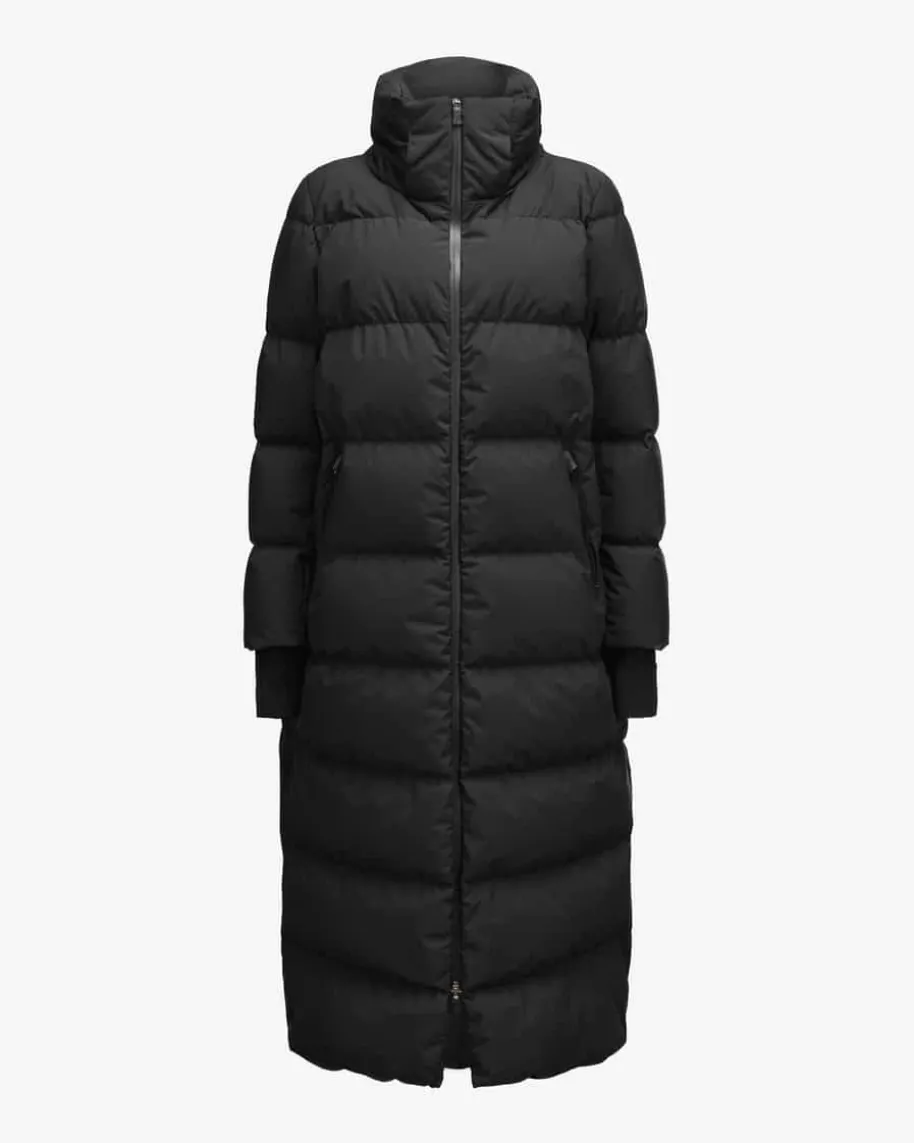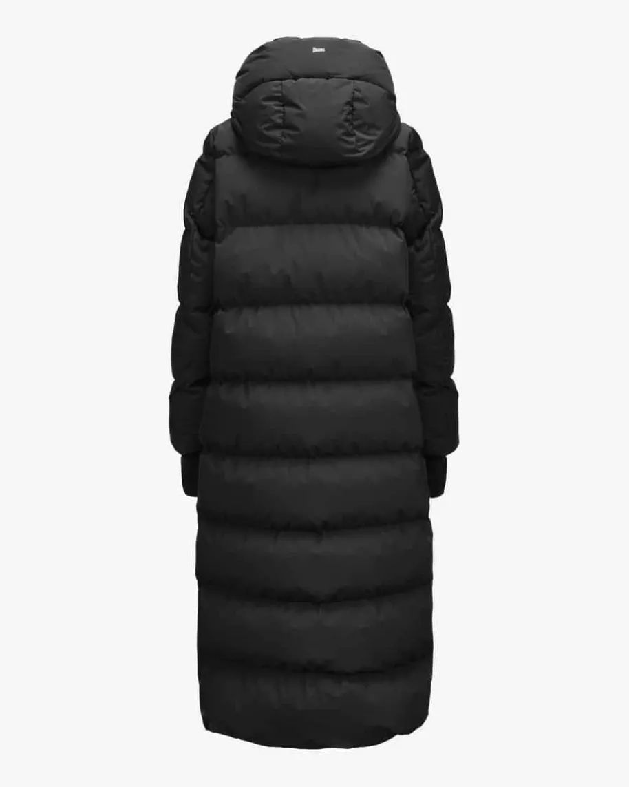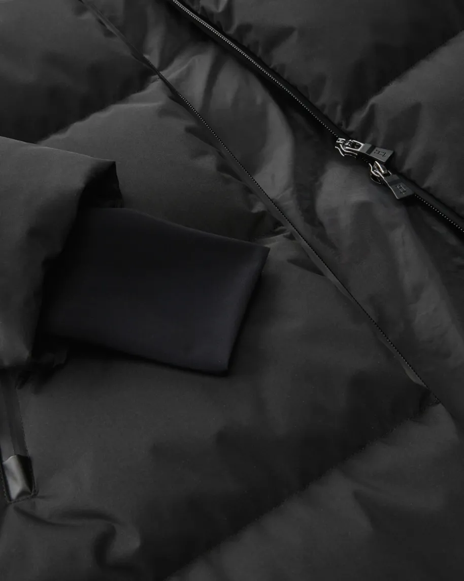 Daunenmantel für Damen von Herno in Schwarz. Das italienische Label hat sich mitseinen besonders weichen und leichten Daunen-Modellen einen Namen in derModebranche gemacht und ist für Liebhaber nicht mehr wegzudenken. Auch dieseslange Modell präsentiert sich in voluminöser Stepp-Optik und hält an kaltenTagen nicht nur warm, sondern punktet auch durch die wasserabweisende Pro MeteoFabric Tool Ausrüstung.