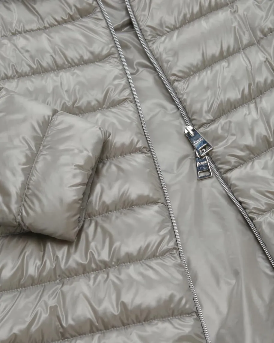 Daunenmantel für Damen von Herno in Grau. Das italienische Premium Labelist seit Jahren bekannt für seine besonders leichten Daunenjacken, die mitzeitlos-sportiven Designs überzeugen. Auch dieses verlängerte Modell begeistertmit changierender Stepp-Optik sowie hochwertiger Daunen-Feder-Füllung, die fürangenehm-warme Tragemomente sorgt.