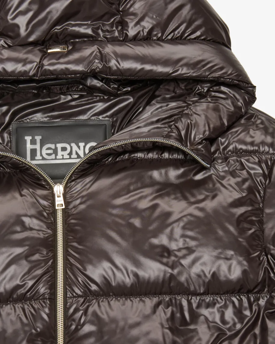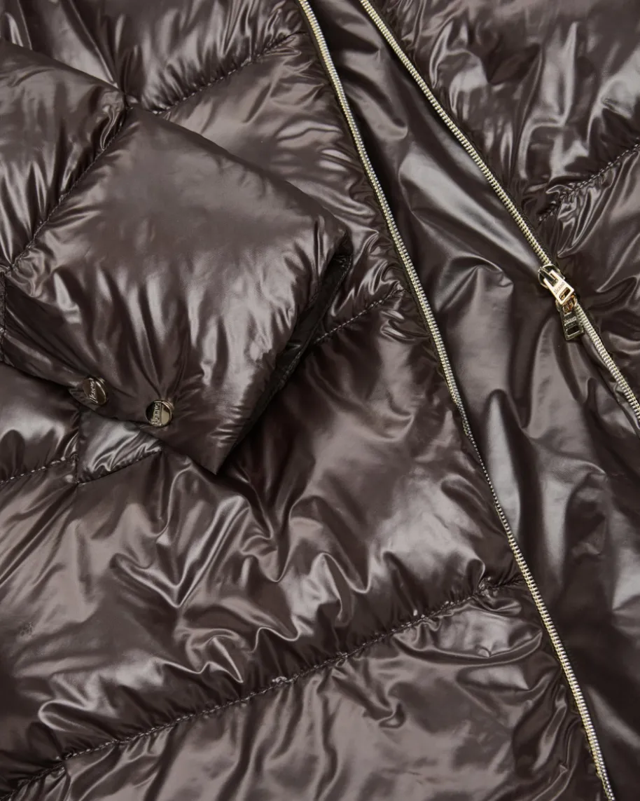 Daunenmantel für Damen von Herno in Dark Chocolate. Das italienische PremiumLabel ist seit Jahren bekannt für seine besonders leichten Daunenjacken, die mitzeitlos- sportiven Designs überzeugen. Auch dieses verlängerte Modell begeistertmit changierender Stepp-Optik sowie hochwertiger Daunen-Feder-Füllung, die fürangenehm-warme Tragemomente sorgt.