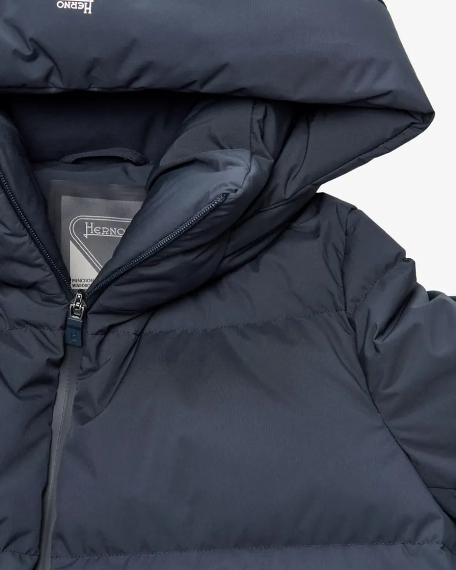 Daunenmantel für Damen von Herno in Navy. Das italienische Label hat sich mitseinen besonders weichen und leichten Daunen-Modellen einen Namen in derModebranche gemacht und ist für Liebhaber nicht mehr wegzudenken. Auch dieseslange Modell präsentiert sich in voluminöser Stepp-Optik und hält an kaltenTagen nicht nur warm, sondern punktet auch durch die wasserabweisende Pro MeteoFabric Tool Ausrüstung.