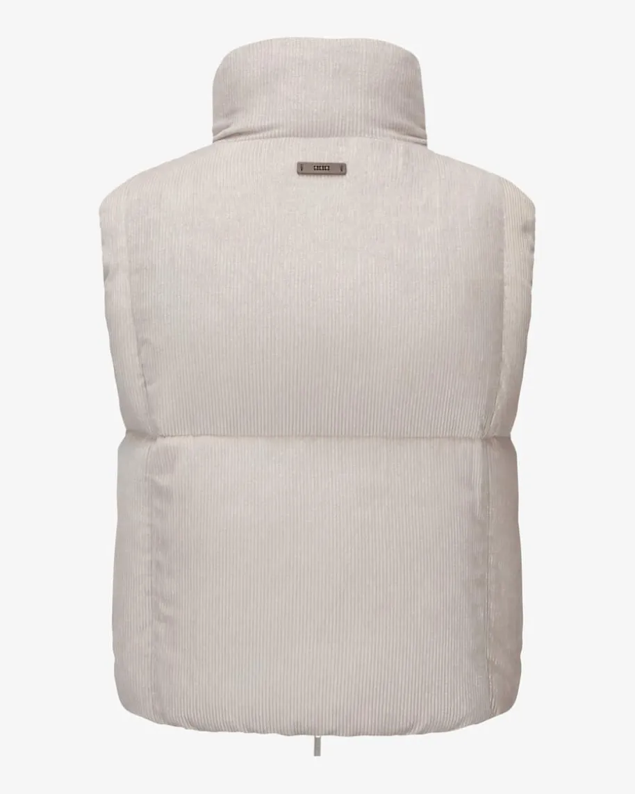 Daunenweste für Damen von Peserico in Mandel. Das Modell präsentiert sich inhochwertiger Viskose-Qualität und überzeugt dank Daunen-Feder-Füllung mitwärmenden Tragemomenten, während das Glitzernde-Samt-Dessin das Gesamtbildharmonisch abrundet. Ein Pre-Fall Favorit für elegante Übergangslooks.