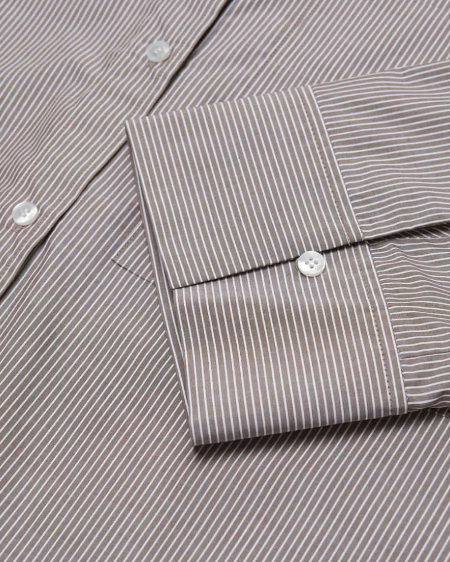 Derris Bluse für Damen von By Malene Birger in Hellbraun und Weiß. Das weitgeschnittene Modell präsentiert sich dank des gestreiften Dessins in modischerAufmachung, während die Bio-Baumwoll-Qualität für angenehme Tragemomente sorgt.