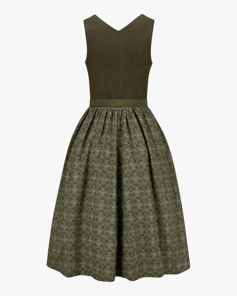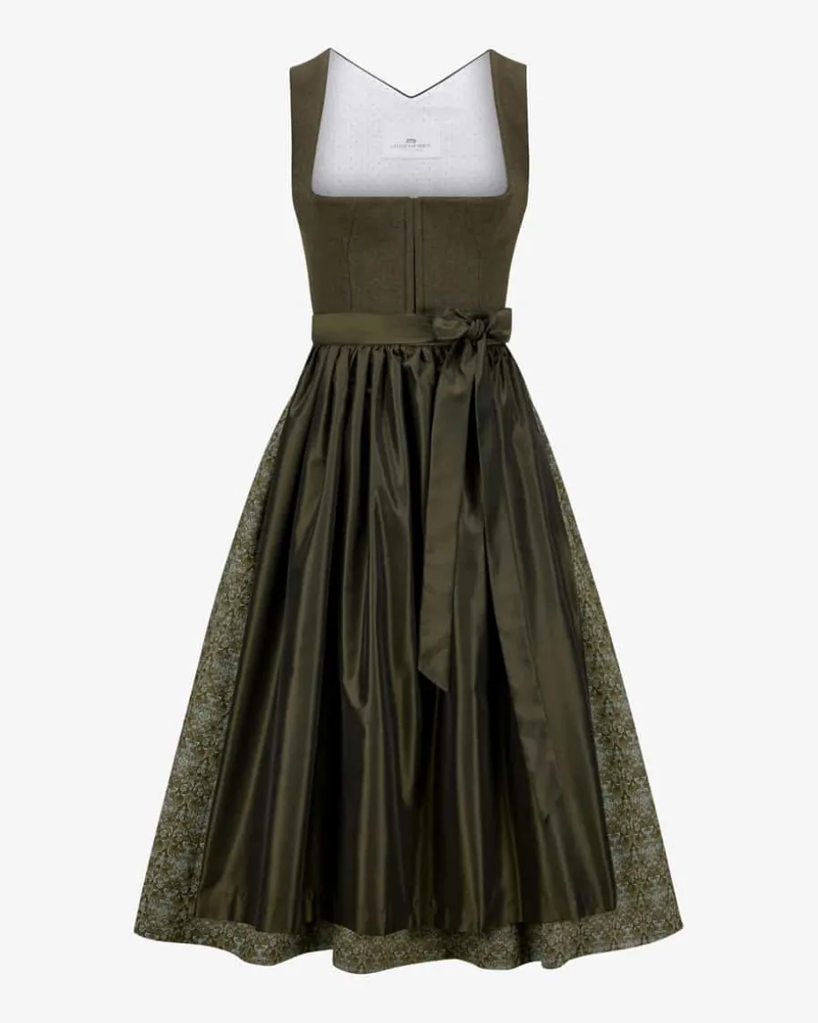 Dirndl lang mit Schürze für Damen von LODENFREY München 1842 in Oliv. Dank derVerwendung von hochwertiger Merinowolle in Loden-Qualität besticht das Modellmit traditionellem Charme, während der Baumwoll-Rock mit floralen Ornamentenfeminine Akzente setzt. Die changierende Schürze rundet das Gesamtbild stilvollab.
