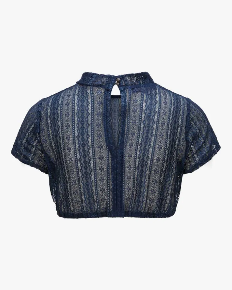 Dirndlbluse für Damen von Silk & Pearls in Dunkelblau. Das hochgeschlosseneModell begeistert mit semitransparenter Spitzen-Aufmachung und avanciert so zummodernen Trachtenbegleiter.