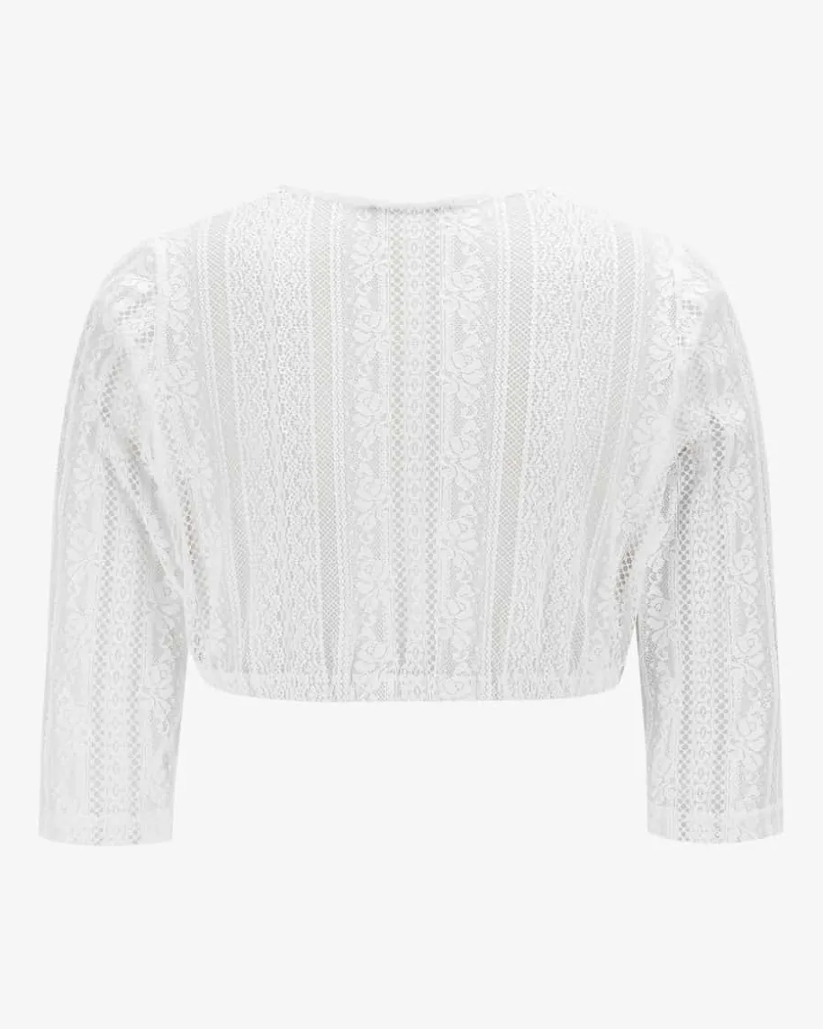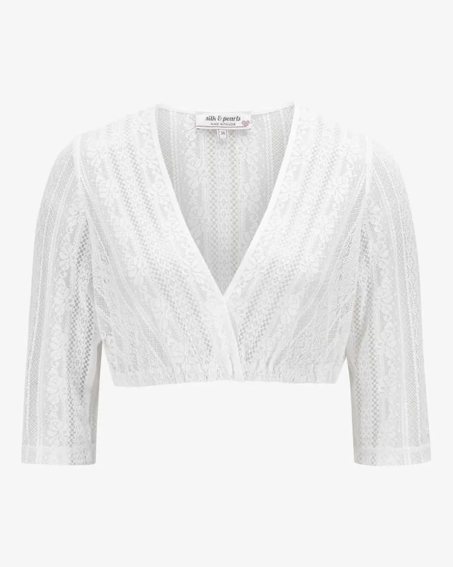 Dirndlbluse für Damen von Silk & Pearls in Weiß. Dank des traditionellen Häkel-Dessins avanciert das Modell zum perfekten Trachtenbegleiter mit dem gewissenEtwas.